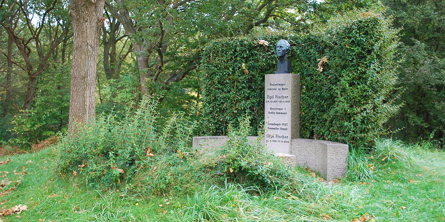 Oven for trappen, på toppen af Kirkebakken står mindesmærket for byplanarkitekt Egil Fischer