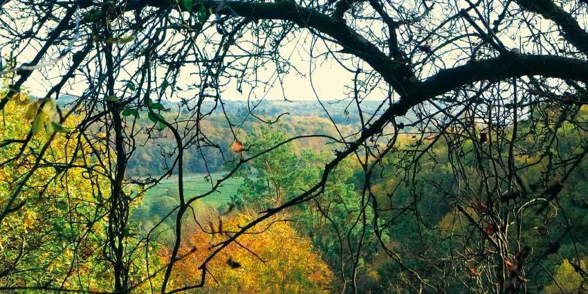 Fra parkeringspladsen overfor Femmøller Efterskole fører den afmærkede sti op over en stejl skrænt ind i Mols Bjerge